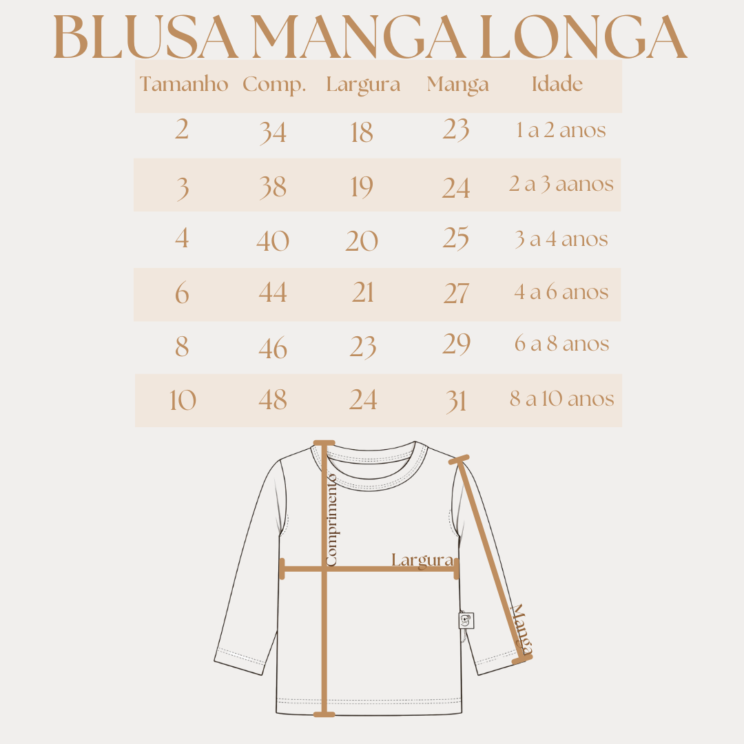 A referência por idade é uma média, cada bebê e criança tem seu biotipo, podendo variar o tamanho da roupa! Importante se atentar as medidas, uma sugestão é medir alguma roupa que ele ja tenha para se basear, pois na tabela são as medidas da roupa!